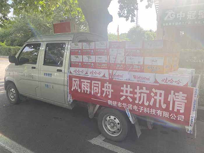 7月27日,鶴壁市華諾電子科技有限公司載著滿車的物資、載著鶴壁華諾廣大員工對(duì)災(zāi)區(qū)群眾的牽掛,赴??h災(zāi)情一線捐助礦泉水、方便面、電風(fēng)扇等急需物資,以實(shí)際行動(dòng)為鶴壁抗汛防洪工作貢獻(xiàn)一份綿薄之力。