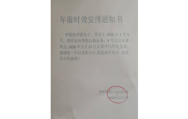 關(guān)于2018年春節(jié)物流貨運(yùn)放假通知